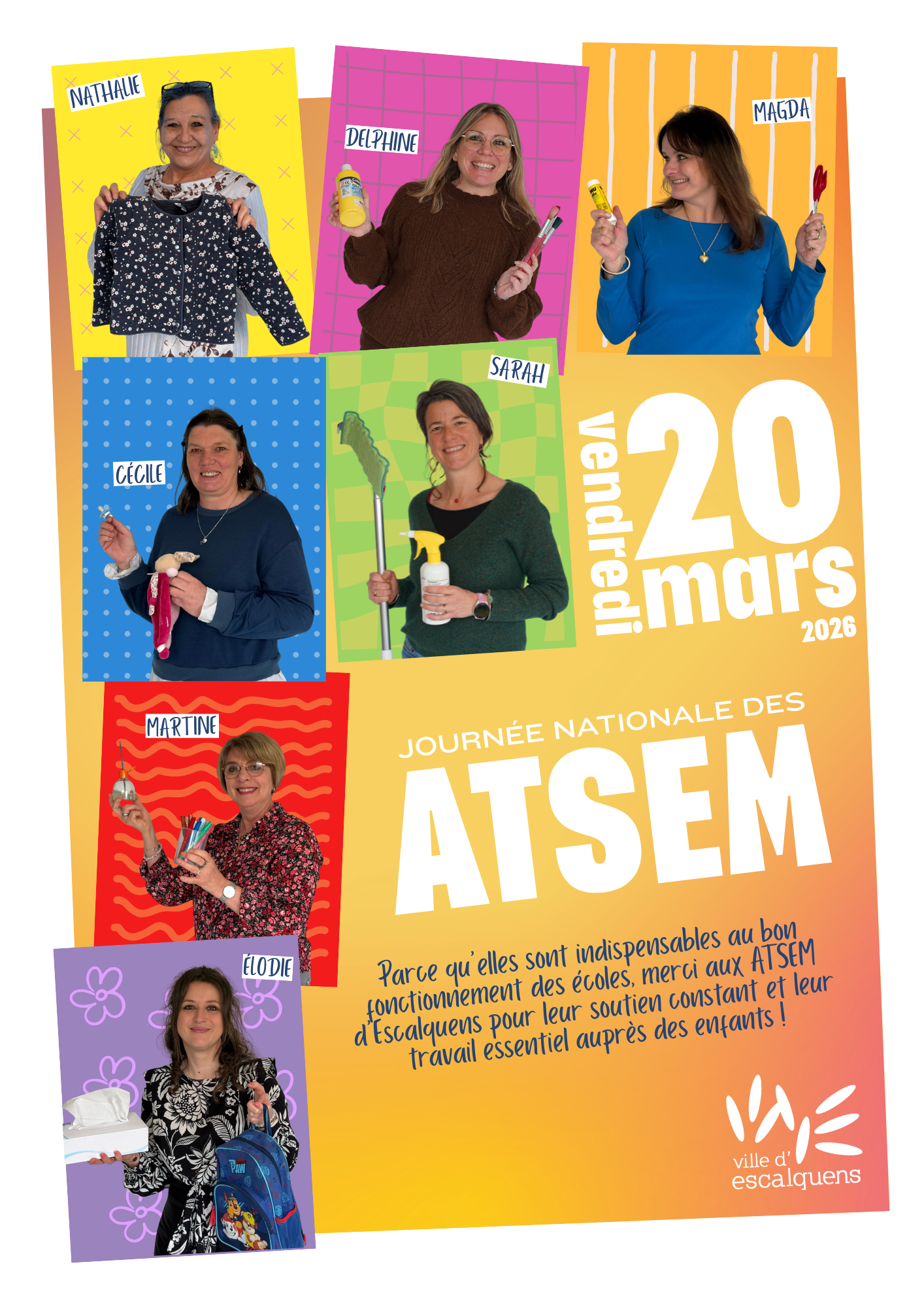 À l’occasion de la Journée nationale des ATSEM, célébrée le vendredi 20 mars, la Ville d’Escalquens met à l’honneur ces professionnelles indispensables qui accompagnent chaque jour les enfants dans les écoles de la commune.